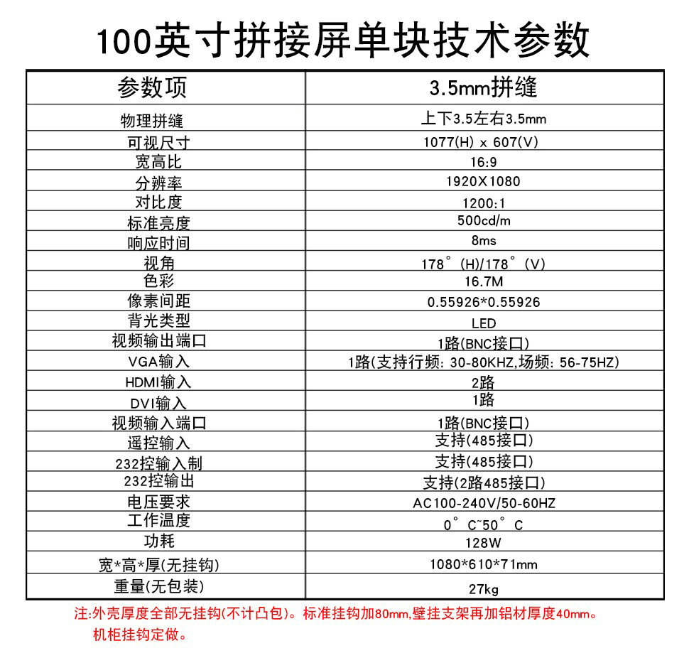 特征:節能認證,商用大屏顯示器,廣告機/電子白板,四邊微邊框,內置音箱